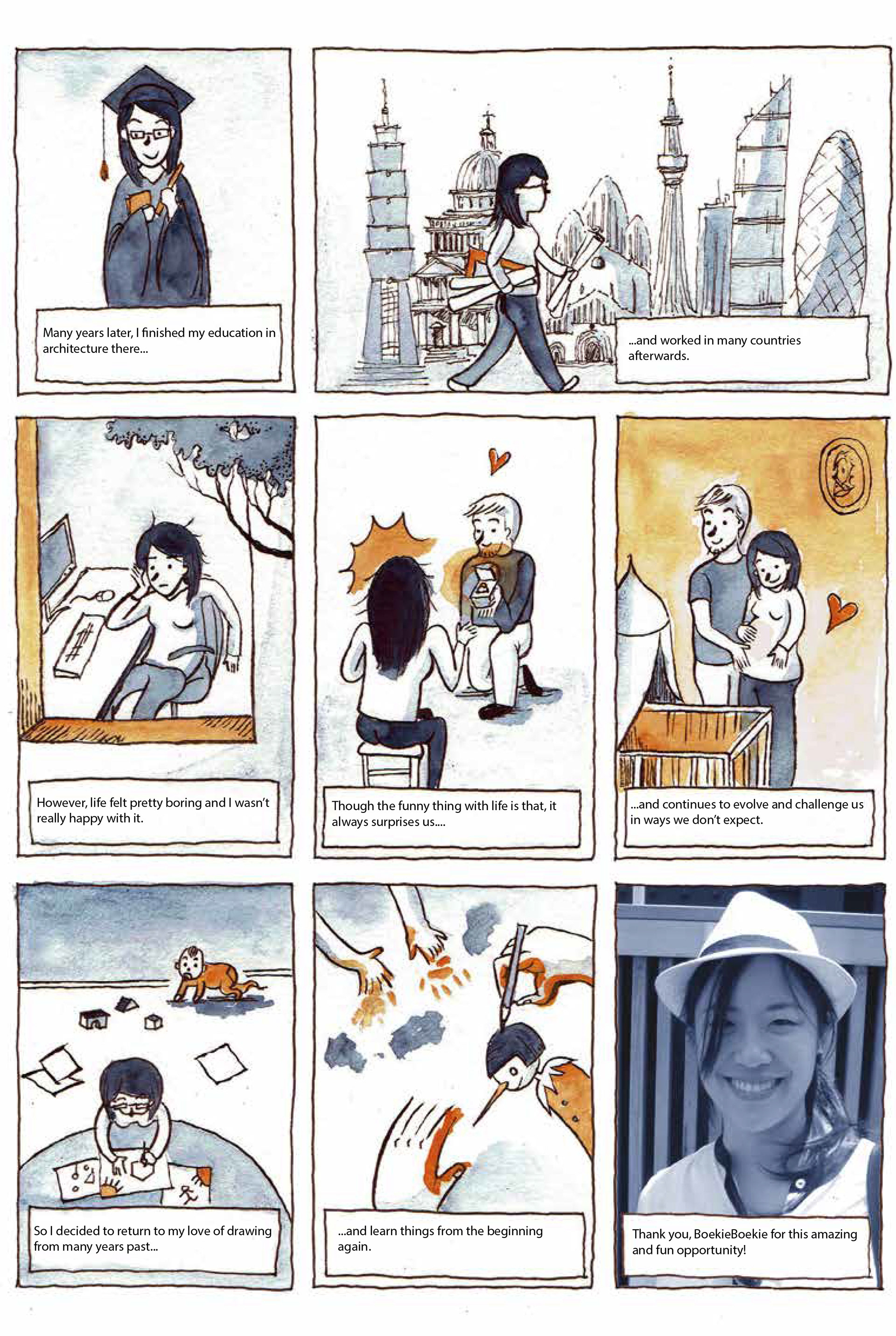 My work mainly focuses on narrative storytelling. When I was little, my mother purchased three boxes of picture books from around the world for us, and I still remember many of the illustrations vividly. As I grew older, graphic novels and mangas became a main source of escape into fascinating worlds and exciting stories. I am still adding new titles to my collections to this day, which meant they are probably the largest genre of books I consume. Adding the architecture world into this mix brings me naturally to solve many problems visually while retaining the spark for imagination and humor. Currently, I am taking on various projects in editorial and conceptual illustration.