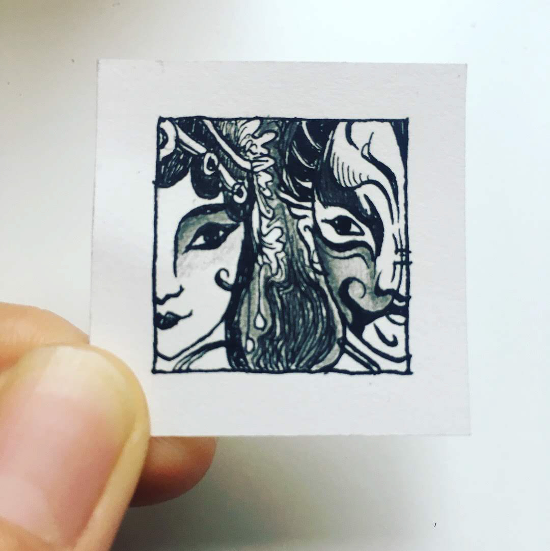 I participated in London Illustration House's September Drawing A Day Challenge, which consisted of drawing on a 1 inch by 1 inch (2.5 x 2.5 cm) paper everyday. Each day I chose a topic that reflected my thought for that particular moment, which then created a mind map of what was occupying my thoughts every day of September 2018. Ink pen and pencil.