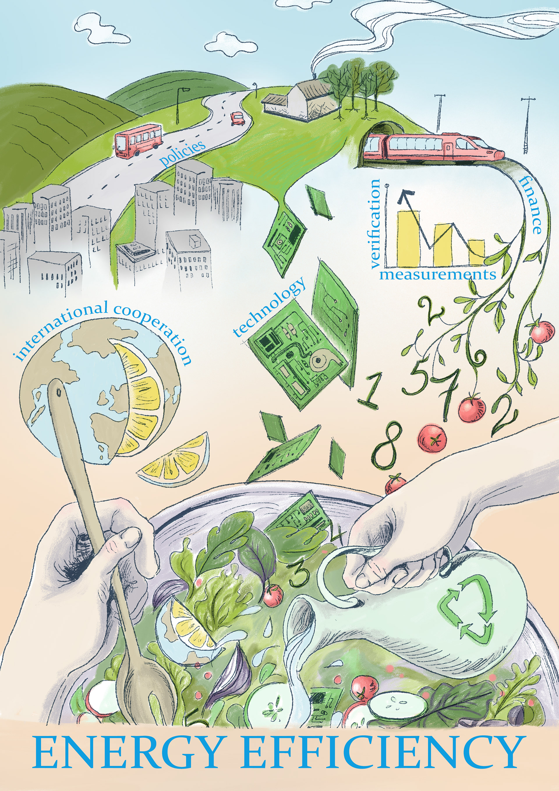 Commissioned illustrations for International Partnership for Energy Efficiency Cooperation (IPEEC) Newsletters with various topics for each quarter. IPEEC is a partnership of 17 countries with a focus on energy efficiency collaboration.